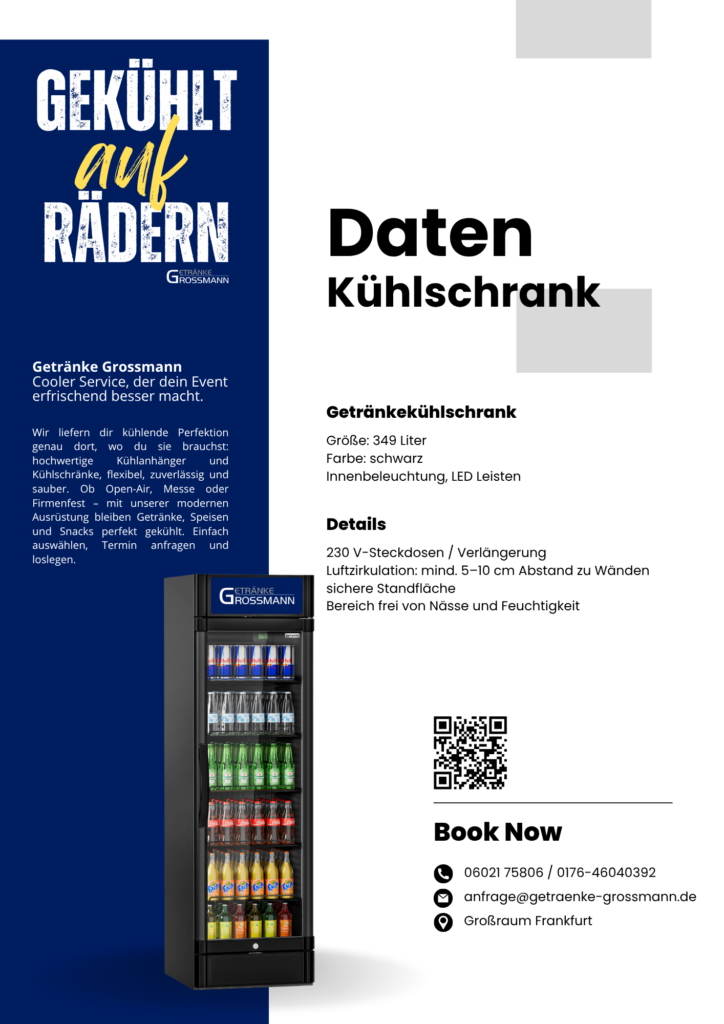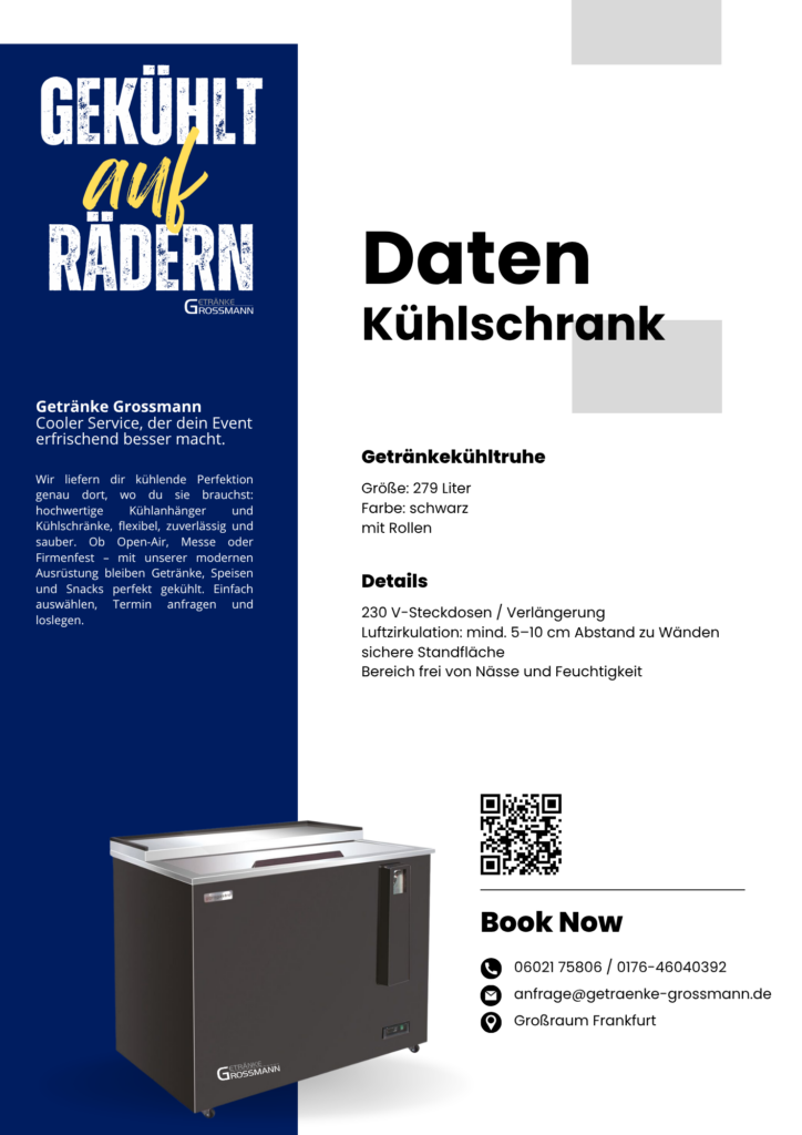 Bei Getränke Grossmann Verleih bekommst du eine umfangreiche Auswahl an Kühlschränken, Kühltruhen und Kühlanhängern, damit deine Getränke und Lebensmittel auf deinem Fest, deiner Hochzeit oder deinem Event in Frankfurt am Main immer perfekt gekühlt sind. Egal, ob du eine Veranstaltung in der Innenstadt, am Flughafen oder auf einer Messe planst – wir haben die passende Lösung für dich!