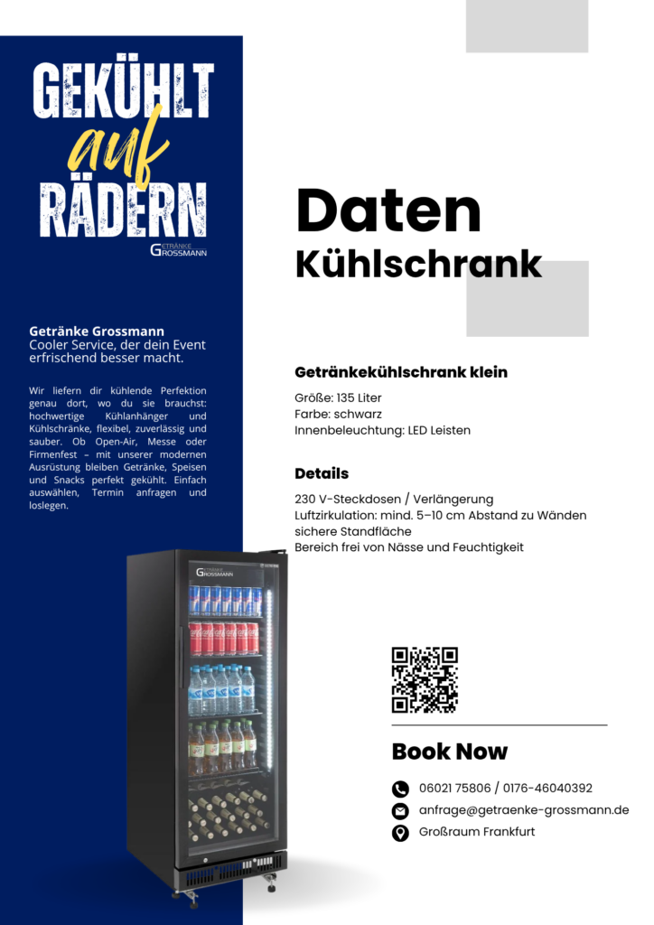 Bei Getränke Grossmann Verleih legen wir großen Wert auf Kundenzufriedenheit und Flexibilität. Unsere Kühlschränke und Kühltruhen sind ideal für die Lagerung von Lebensmitteln und Getränken und sorgen dafür, dass alles frisch bleibt. Ob private Feiern oder geschäftliche Anlässe – wir bieten maßgeschneiderte Lösungen für jedes Event. Besuche unsere Webseite und entdecke unser umfangreiches Angebot zum Kühlschrank mieten in Frankfurt am Main!