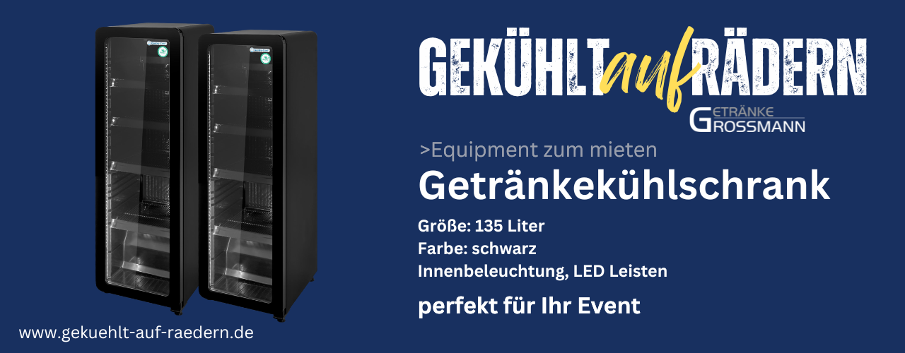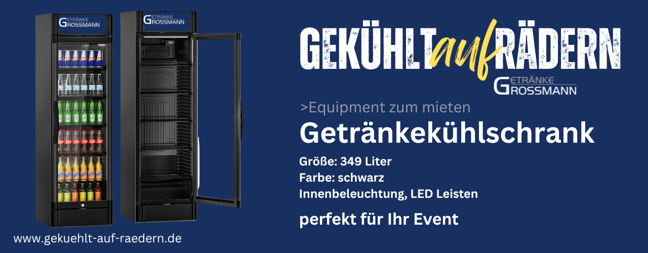 Willkommen bei Getränke Grossmann Verleih, deinem zuverlässigen Partner zum Kühlschrank mieten in Frankfurt. Egal, ob du eine Veranstaltung in der Innenstadt, am Flughafen oder auf einer Messe planst – wir bieten dir eine breite Palette an Produkten, die deine Veranstaltung unvergesslich machen. Von Glaskühlschränken über Kühltruhen bis hin zu eleganten Stehtischen – unser Sortiment ist perfekt auf die Bedürfnisse von Events jeder Art abgestimmt.